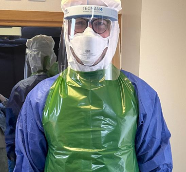 - Matt Hopkins, SECAmb’s HCID Educational Lead, wearing the Unified HCID PPE ensemble.